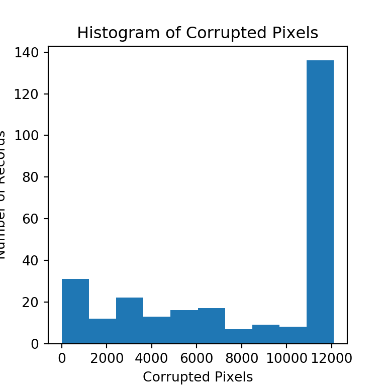 Almost 50% of the corrupted images have all the pixels corrupted.